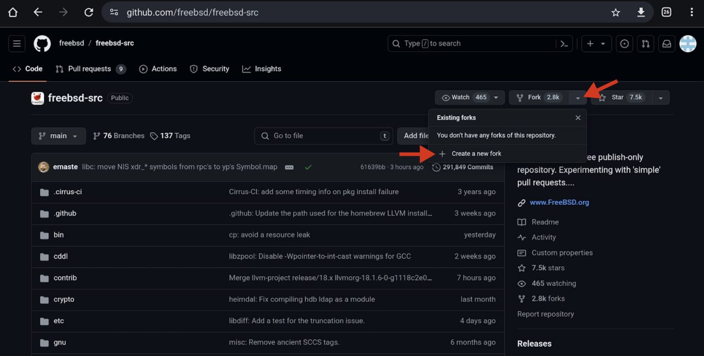 每 10 分钟,FreeBSD 源代码库会被镜像到 GitHub 存储库——freebsd-src。