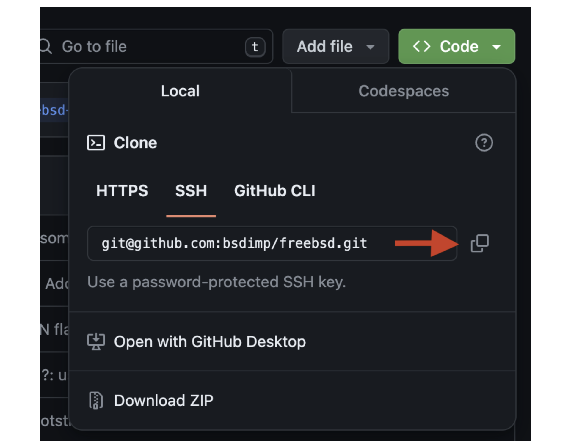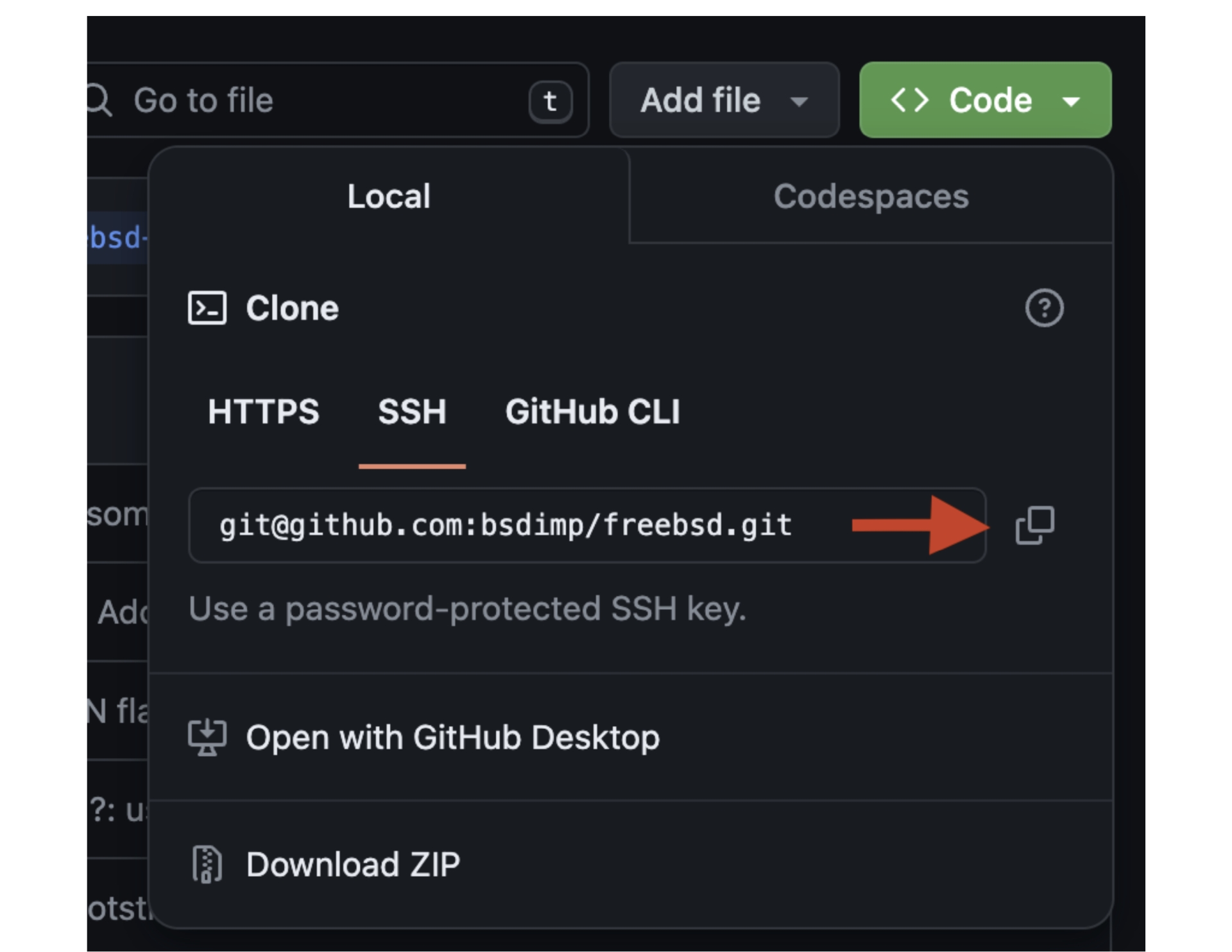 这些是你要在 GitHub 网页上执行的步骤。其他命令将在 FreeBSD 主机上的终端中完成。为简单起见,屏幕截图已更改为命令或命令及其生成的输出。