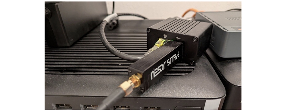 最终实现 —— NanoPi 与插在防火墙上的 USB SDR 接收棒。