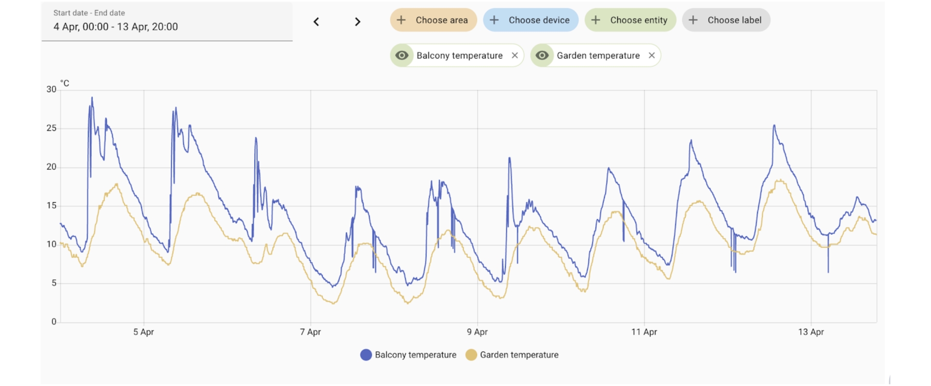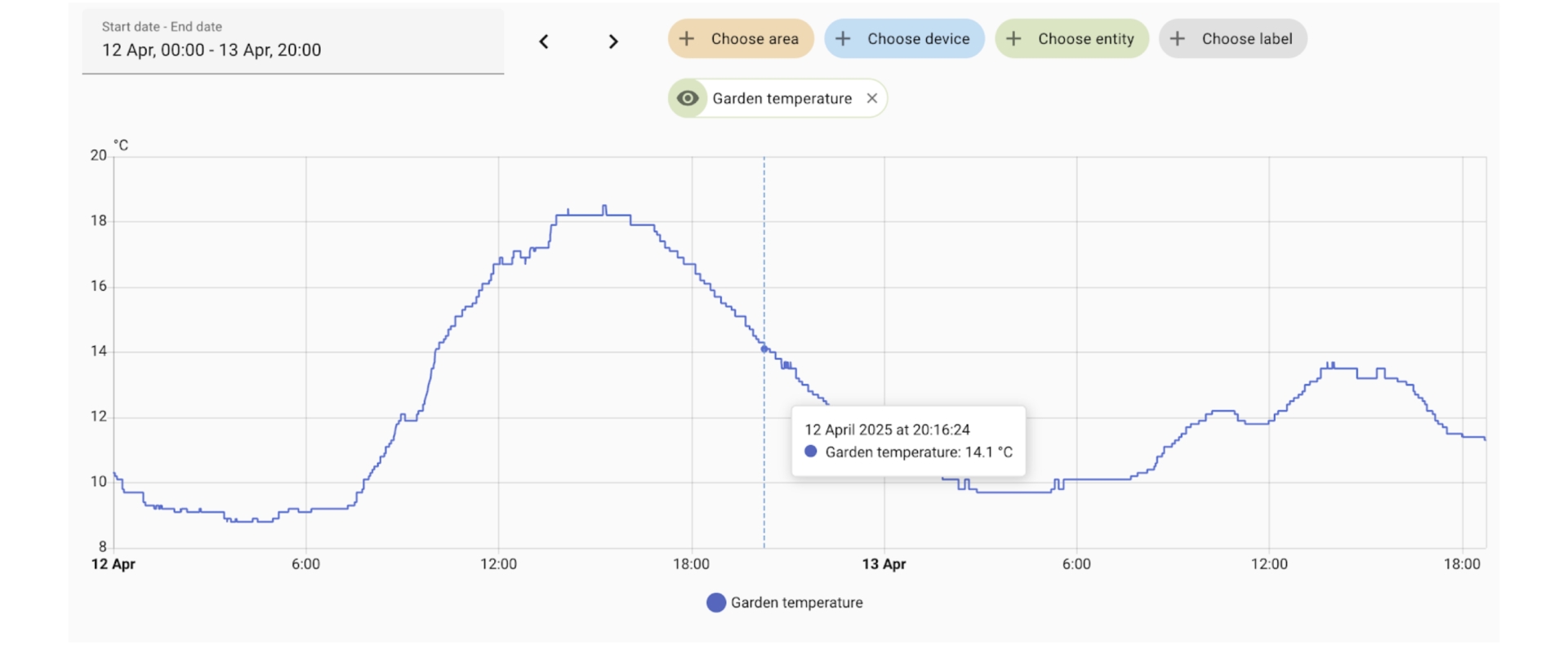 Home Assistant 顺利绘制出了由花园温度传感器捕获的温度曲线。